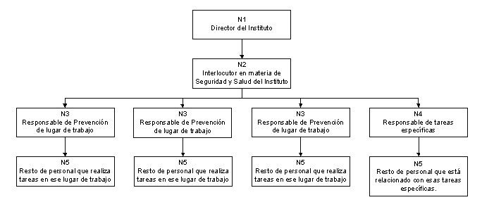 B. Debe establecerse un responsable de Instituto en materia de Seguridad y Salud para gestión interna de seguridad e interlocución con el Servicio de Prevención de Riesgos laborales de la UPV. Para ello el Director del Instituto queda designado automáticamente como figura organizativa N1, el cual designará al responsable del Instituto en materia de Seguridad y Salud ( figura organizativa N2).
