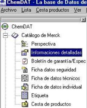 Puede Ud. acceder a la página web de la compañía Merck KgaA a través de la base de datos, haciendo click con el ratón sobre el texto Merck en la web que aparece en el árbol desplegable.