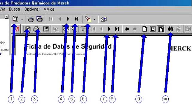 4. Comando siguiente producto: al presionar este icono, se pasa a otra Ficha de Datos de Seguridad, teniéndose en cuenta que los productos químicos están ordenados alfabéticamente.