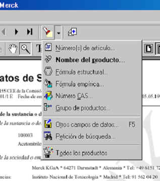 Instrucciones para la utilización de la base de datos de la firma MERCK para la obtención de "hojas de datos de seguridad (MSDS)