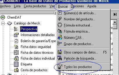 Aparte de los métodos descritos para buscar sustancias químicas en la base de datos, puede Ud. desplegar el listado completo de productos: