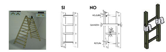 Correcto ensamblaje y buen estado de peldaños y largueros
