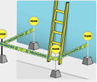 - Defecto en elementos auxiliares (poleas, cuerdas, etc.) necesarios para extender algunos tipos de escaleras.