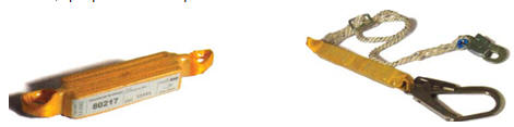 Absorbedor de energía con elemento de amarre incorporado. (Absorbedor de energía norma aplicable: EN 355; elemento de amarre norma aplicable: EN 354). Es un equipo constituido por un elemento de amarre que lleva incorporado un elemento de absorción de energía (en el caso más general se trata de dos cintas textiles imbricadas o cosidas constituyendo una única pieza que se presenta plegada sobre sí misma y enfundada en un material plástico). La disipación de energía se consigue mediante la rotura de los hilos.
